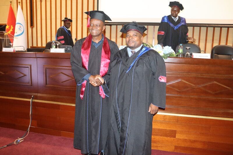 A mesa do Júri esteve composta pelo PhD Nelson Domingos António- Presidente do Júri; PhD Heitor Barras Romana- 1º Arguente; PhD Betuel Mvumbi- 2ª Arguente; MSc. Alberto Kizua- 3º Arguente; PhD Gabriel Benguela- Orientador, tendo atribuído ao mestrando, a classificação final de Muito Bom.