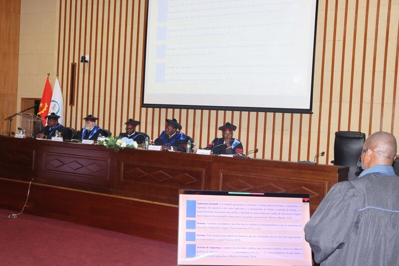 “Os Desafios Jurídicos, para a Operacionalização do Sistema de Segurança Nacional da República de Angola (2010-2022)”, foi o tema apresentado pelo candidato, que teve como orientador o Prof. Doutor Gabriel Benguela.